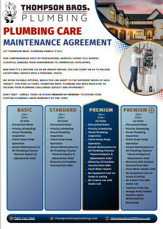 and void. Thompson bros. Plumbing LLC will repair and maintain equipment covered by this Agreement. However, this is not an